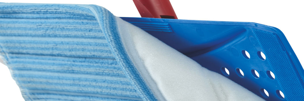 Besonderheit: Diese Mops haften mit einer innovativen Klett-Technologie am Halter und sind dadurch besonders leicht aufzuspannen und abzunehmen.