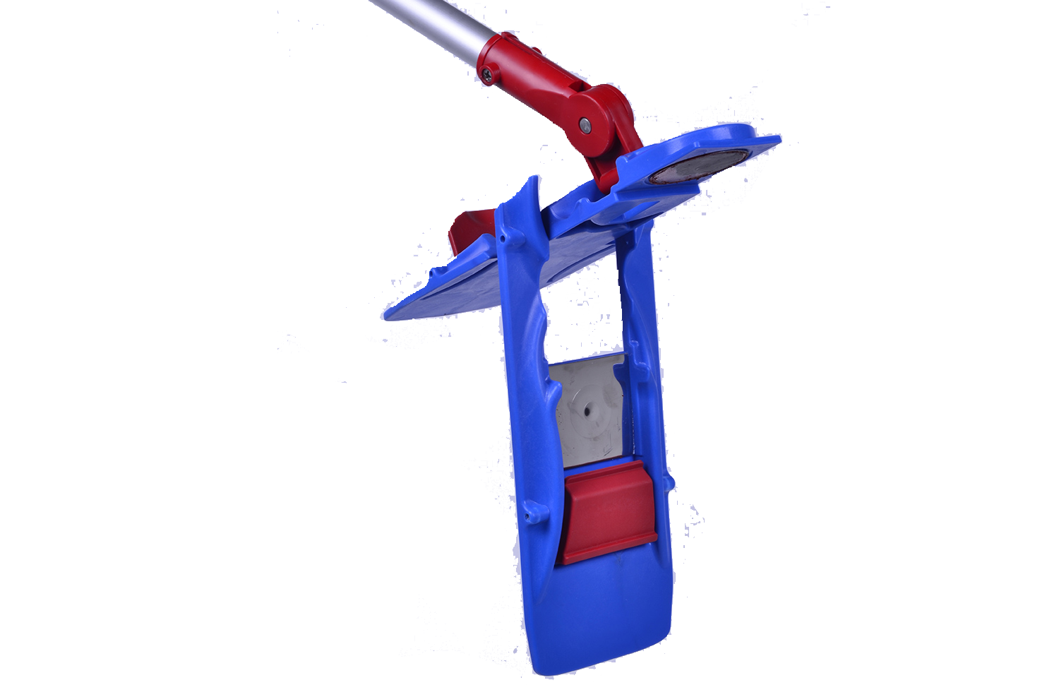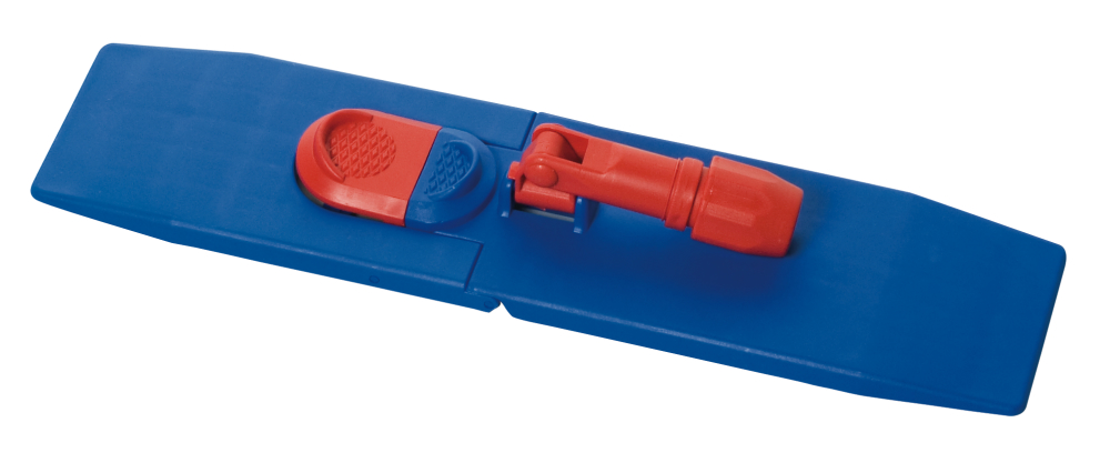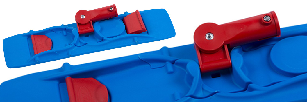 Diese Standardhalter sind zur Aufnahme unserer Wischbezüge mit Arbeitsbreiten von 40cm und 50cm vorgesehen. Der Halter wird einfach und schnell an den Taschen auf der Rückseite der Wischbezüge angesetzt und mit einem einfachen Druck auf die rote Fußtaste gestreckt.