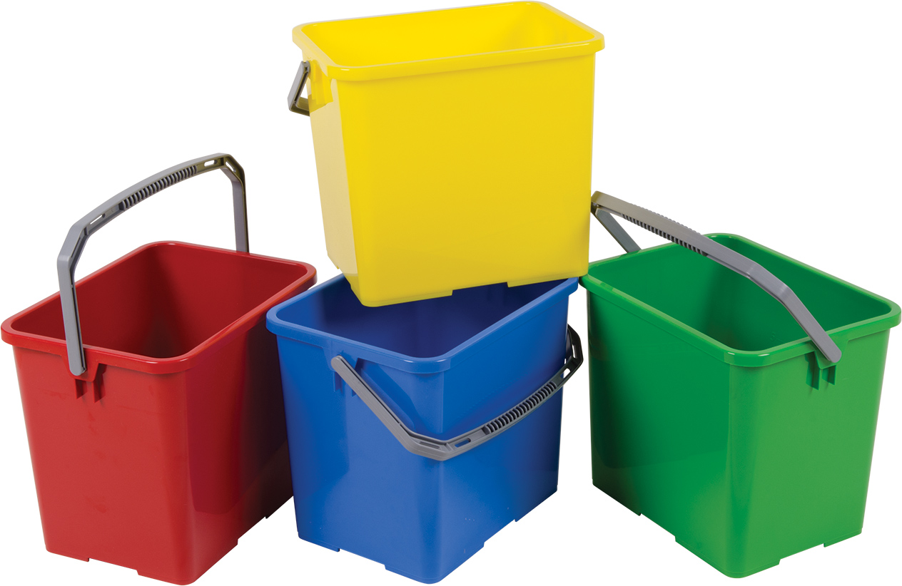 Diese Ersatzeimer sind speziell für den Doppel-Wischwagen mit Presse konstruiert. Die Füllmenge beträgt 25 Liter und sie sind mit einer Füllstandsanzeige ausgestattet.