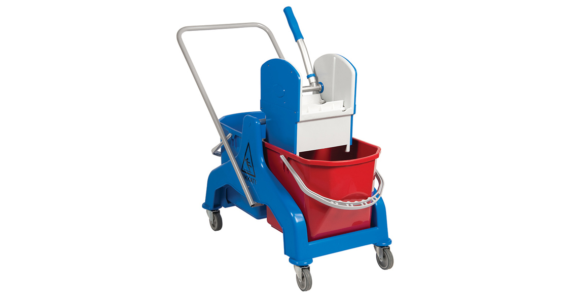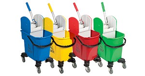 Unsere Nasswischwagen sind mit einem Eimer und einer leichtgängigen Presse ausgestattet. Dank vier bodenschonenden beweglichen Rollen und einem großen Griff lassen sie sich auch bei beengten Platzverhältnissen leicht manövrieren. Geeignet für den Einsatz mit den Feuchtmops und Laschen.